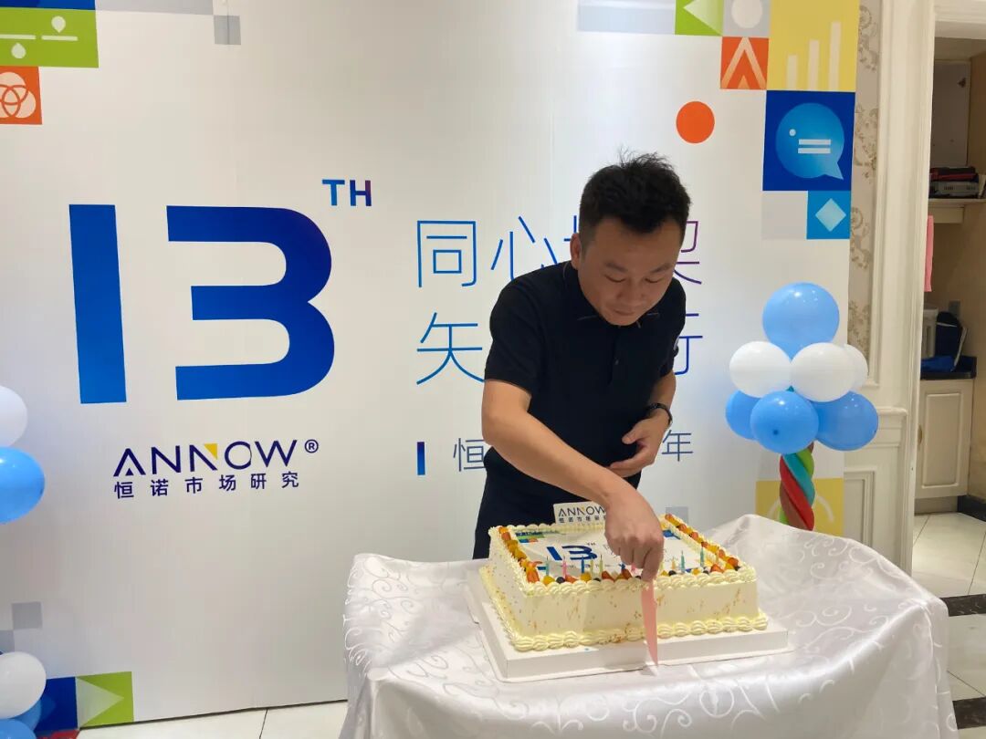 为庆祝恒诺十三周年, 由总经理潘文为大家分发了精心设计的生日蛋糕,大家在这充满仪式感的氛围下,高声对恒诺说出了祝福:“祝恒诺十三岁生日快乐!”
