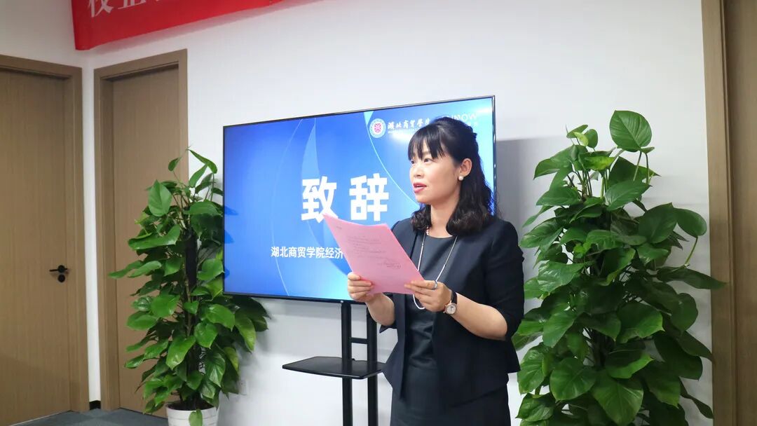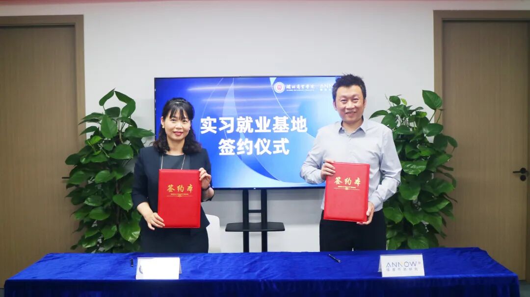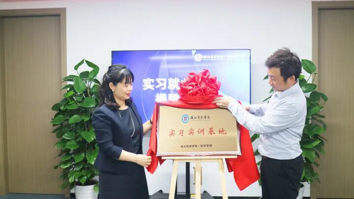 在签约仪式上,陈靓秋院长和潘文总经理分别代表校企双方签署了《湖北商贸学院实习实训基地协议书》,并为湖北商贸学院实习实训基地揭牌。